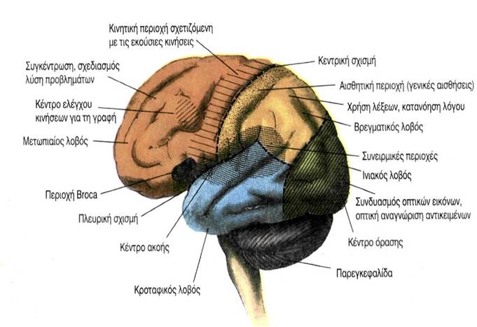 εικ.14 Κινητικές, αισθητικές και συνειρμικές περιοχές του εγκεφάλου Περιοχή Broca: υπεύθυνη για την παραγωγή του λόγου