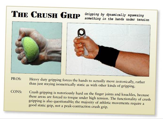 Όταν τα χέρια πιάνουν σφιχτά γύρω από ένα αντικείμενο, υπάρχουν δύο ομάδες μυών του βραχίονα που μπαίνουν σε χρήση. Ο βραχιονοκερκιδικός μυς και οι καμπτήρες του καρπού. Οι καμπτήρες βρίσκονται στο εσωτερικό μέρος του πήχη και κυρίως ενεργοποιούνται, όταν ο καρπός τραβάει προς το σώμα. Ο βραχιονοκερκιδικός βρίσκεται κατά μήκος του εξωτερικού μέρους του βραχίονα και ενεργοποιείται όταν ο καρπός σπρώχνει μακριά από το σώμα. Όταν ο καρπός είναι σε ουδέτερη θέση, οι δύο αυτές ομάδες μυών χρησιμοποιούνται για την ισορρόπηση του βάρους. Εκτός από ασκήσεις που απομονώνουν τους πήχεις, υπάρχουν και άλλοι τρόποι για να εξαντλήσουν τη δύναμή τους.
